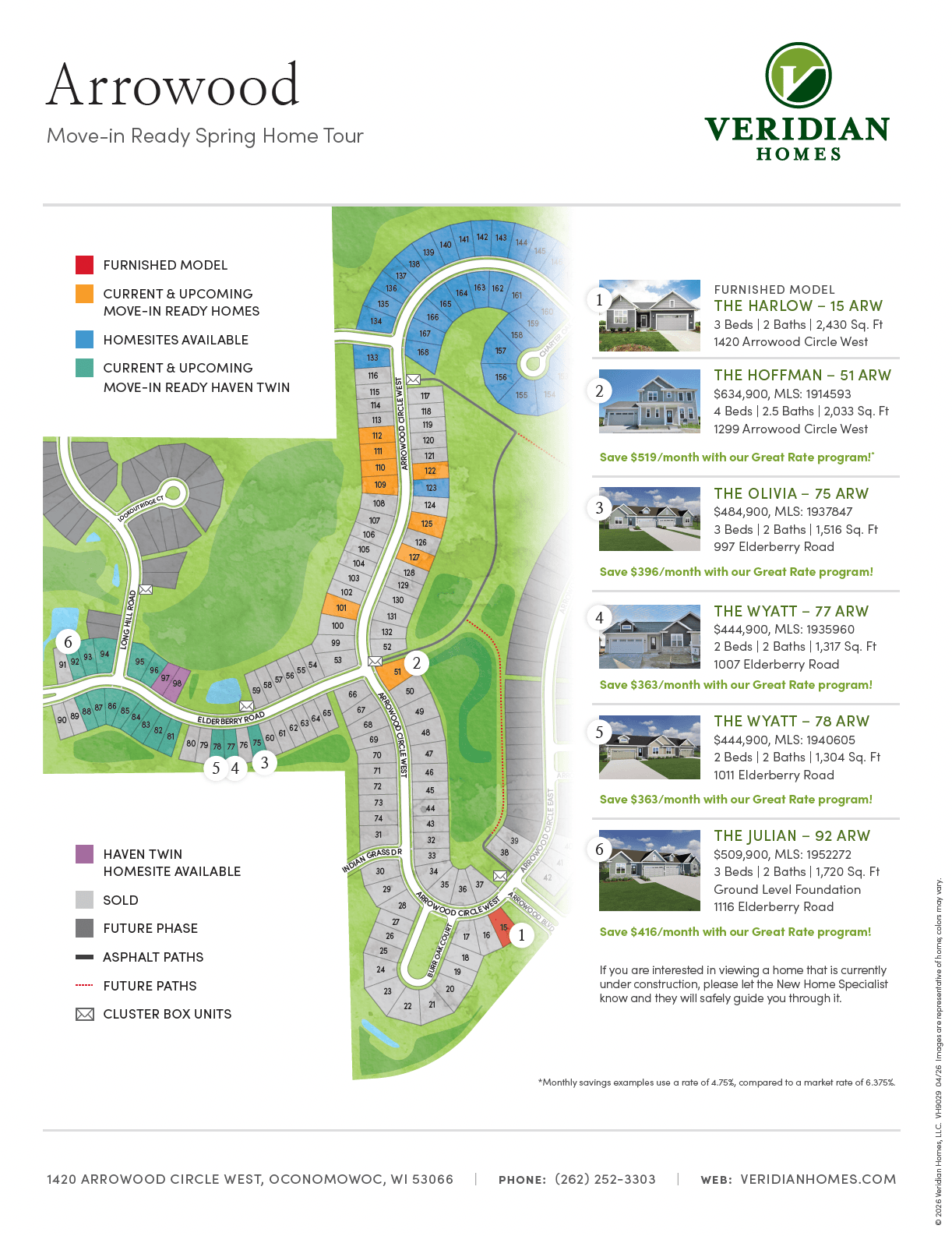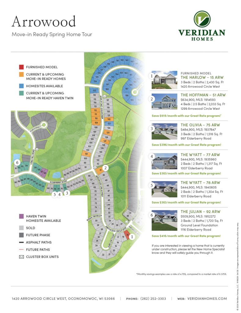 - The Harlow in Arrowood: 1420 Arrowood Circle West, Oconomowoc, WI 53066